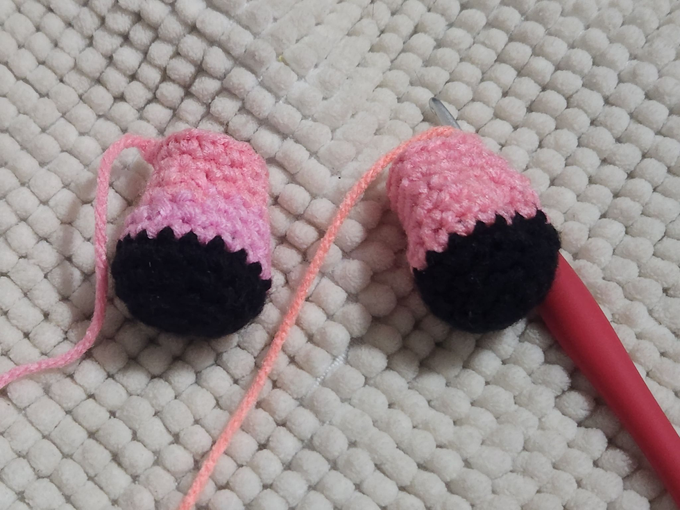 Round 8: sc into the first st on the first piece, and the next 5, sc x6 around the second piece (12)